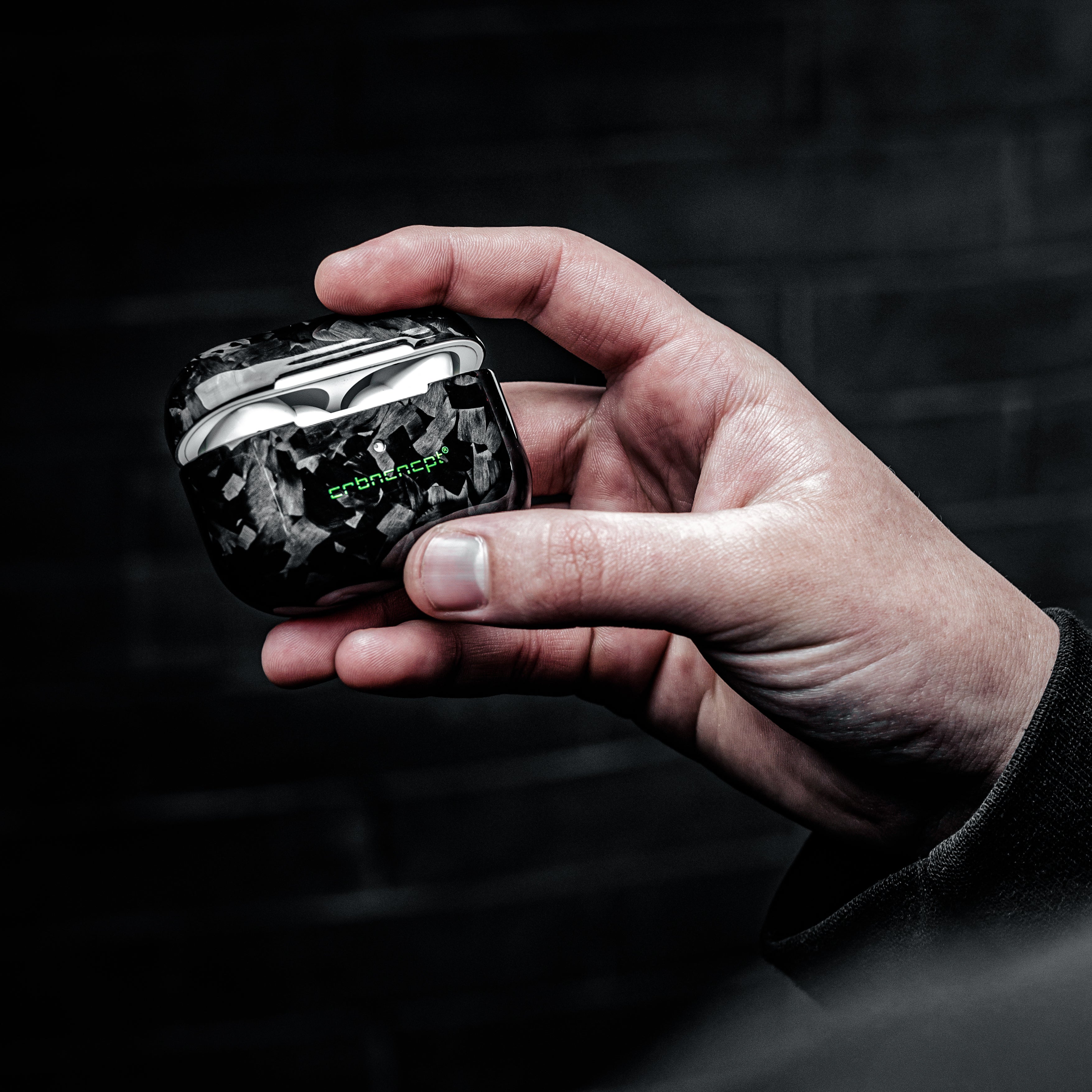 Apple AirPod Hüllen aus Carbon – ultradünn & robust. Wähle zwischen klassischem Carbon Fiber/Kohlenstofffaser oder markantem Forged Carbon. Schlanker Schutz ohne Bulk, passgenau für deine Apple AirPods.