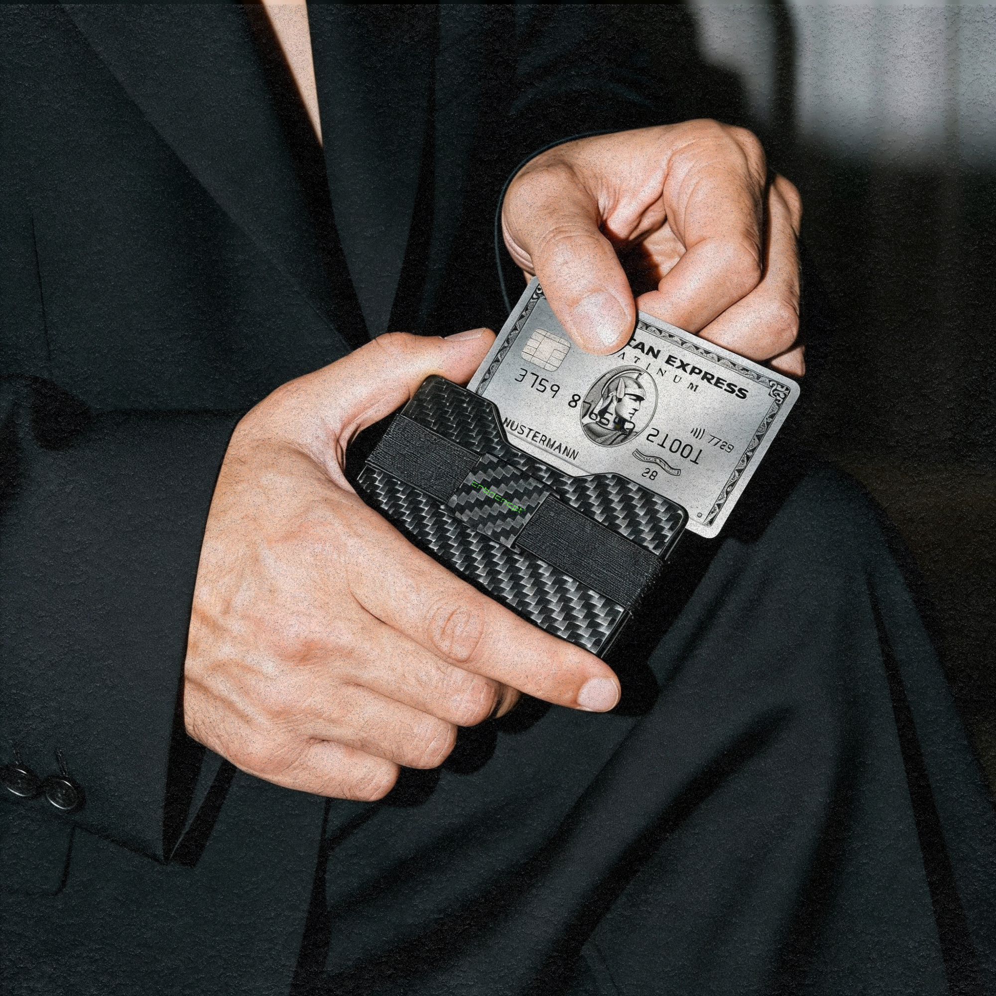 Das Material liefert die Substanz: Carbon steht für Ultraleichtigkeit und Beständigkeit und schirmt RFID-Signale ab – kontaktlose Karten bleiben geschützt.